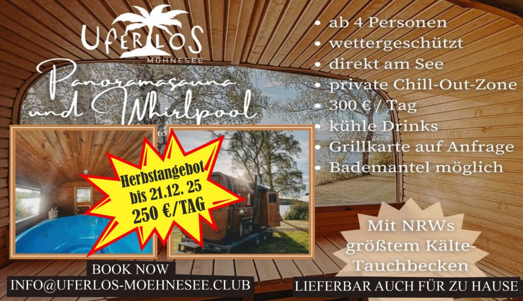 Wir sind freitags, samstags und sonntags von 10:00 bis 22:00 Uhr für euch da.Wenn ihr Fragen habt, meldet euch gerne bei uns:Telefon: +4915150592158E-Mail: info@uferlos-moehnesee.club