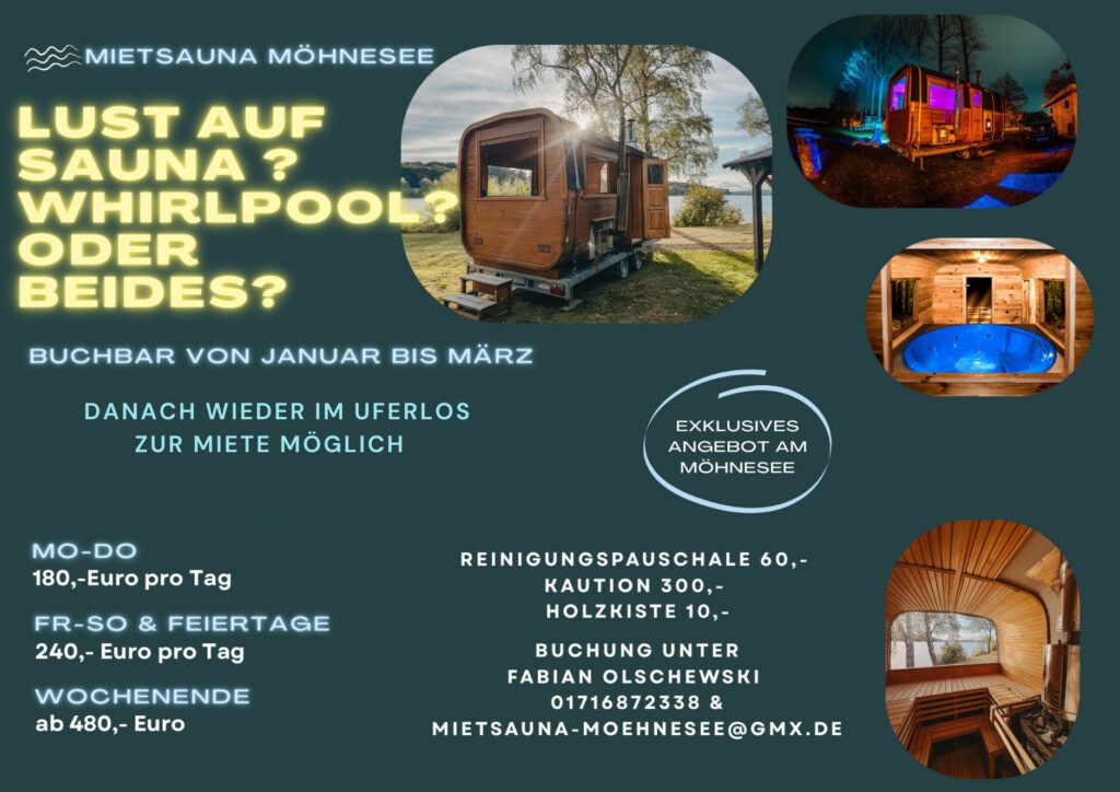 • In Kombination mit Veranstaltungsraum von uns nutzbar, sodass auch größere Sauna- Feiern mit bis zu 25 Personen durchgeführt werden können